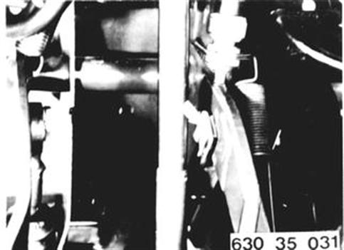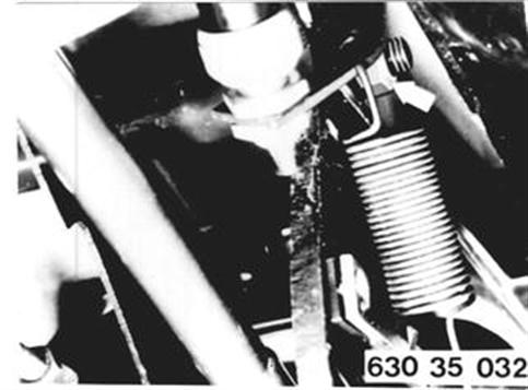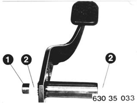 Disconnect brake pedal spring. Lift out piston rod lock on brake pedal. Remove shaft. | ![]() |