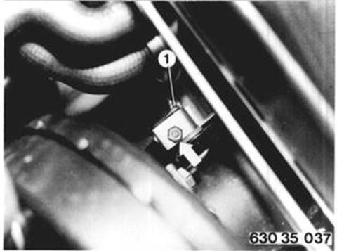 Vehicles before change point in 1982 DETACHING AND ATTACHING ACCELERATOR ARM Remove lock washer (1). Loosen holding screw on accelerator arm and remove accelerator arm. Installation: Press accelerator pedal shaft to the right against stop and install accelerator arm against stop. Tightening torque¹). ¹) See Specifications