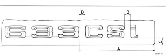 Vehicles after change point in 1982 REPLACING REAR MODEL SIGN The model sign is cemented and cannot be reused. Coat a nylon string or garn with Tenside (e.g. dish washing detergent) ans "saw through" coat of cement between trunk lid and model sign. Remove residual cement with methylated spirits. Model signs may only be installed at room temperature. Locate tape up to upper edge "C" and mark distances according to table. Heat model sign to approx. 40 ... 50°C (105 to 120°F) and press on firmly 5 to 10 seconds.