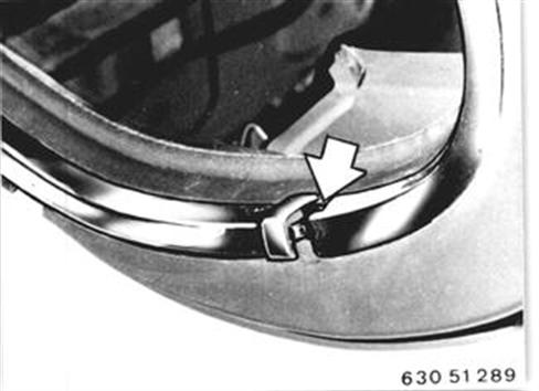 Pull off door seal partially and remove outer door pillar plate. Installation: Lips of rubber door seal must be located behind door pillar plate. | ![]() |