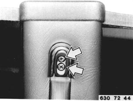 Unscrew bottom bolts. Lift off trim and let it hang down from seat belt. | ![]() |