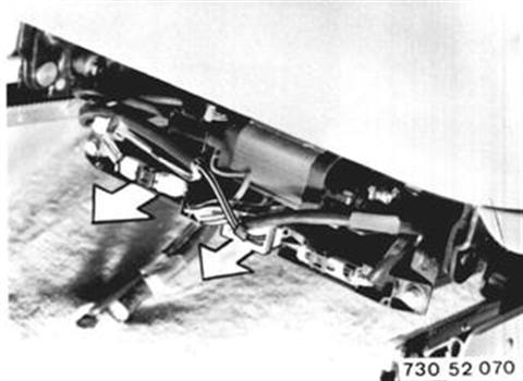 Vehicles after change point in 1982 REMOVING AND INSTALLING LEFT OR RIGHT FRONT SEAT Note: If mounting bolts are not accessible due to failure of the electrical forward/back control, unscrew spring core on rails, disconnect plugs and take off seat.