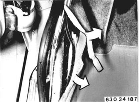 Route wires inwand. Detach carpet and trim on left side as required. Pull wires forward in car. | ![]() |