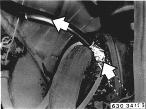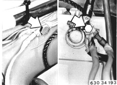 Vehicles after change point in 1982 REPLACING WIRE HARNESS FOR ABS (On M 6, ABS wires are integrated in main harness.) Disconnect battery ground lead. Disconnect ground wire on body. Disconnect wire on battery positive pole. | ![]() |