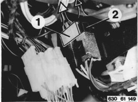 Disconnect central fuse/relay plate plug (1) and plug connector (2). | ![]() |