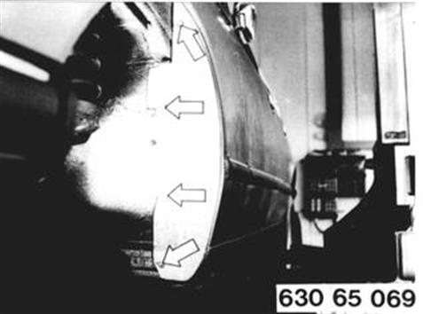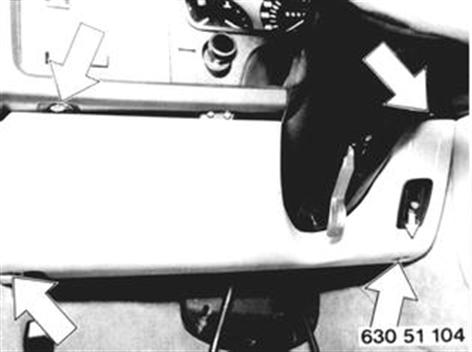 Detach and attach instrument panel trim at bottom left 51 45 180. Loosen screws and take off left front wheel house trim. 51 45 180