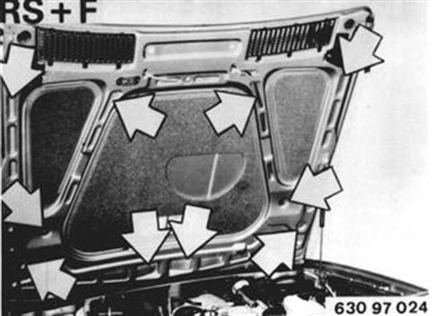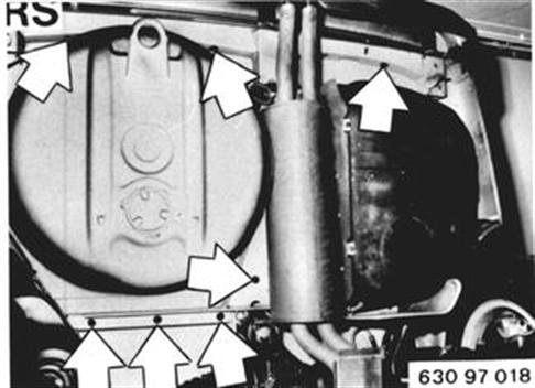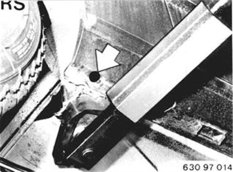 CAVITY SEALING AND UNDERCOATING Treat entire car. Refer to preparation instructions! Protect wheels with covers¹). A) Cavity Sealing: Insert spray tube fitted with pertinent nozzle in cavity as far as possible (in all directions). Star spray action and pull out spray tube slowly and uniformly to guarantee a full and uniform coat. Spray Nozzles Required: RS = Round stream slotted nozzle F = Flat stream nozzle ¹)Source of supply: HWB